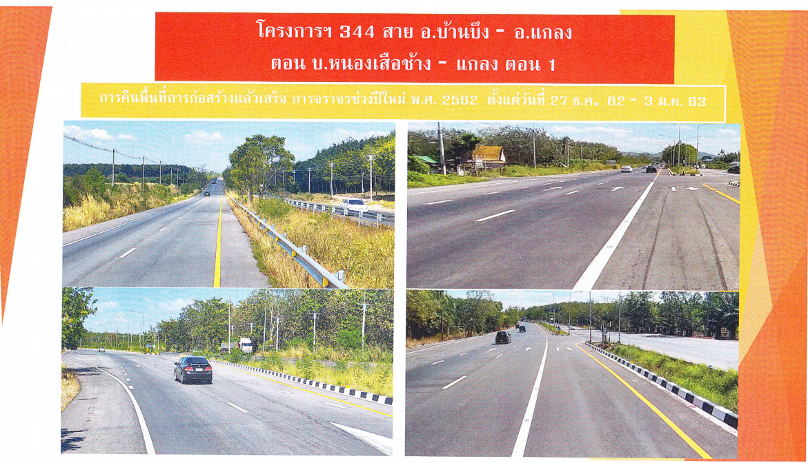 โครงการฯ 344 สาย อ.บ้านบึง-อ.แกลง ตอน บ.หนองเสือช้าง-แกลง ตอน 1 การคืนพื้นที่การก่อสร้างแล้วเสร็จ การจราจรช่วงปีใหม่ พ.ศ. 2562