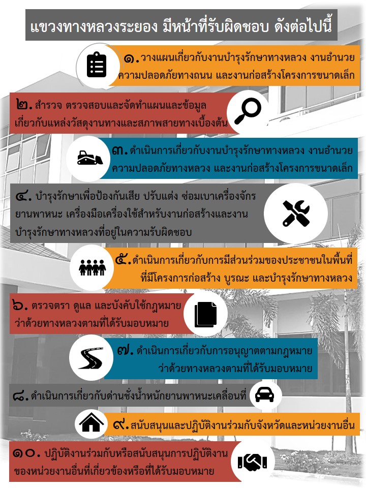 แขวงทางหลวงระยอง มีหน้าที่รับผิดชอบ ดังต่อไปนี้