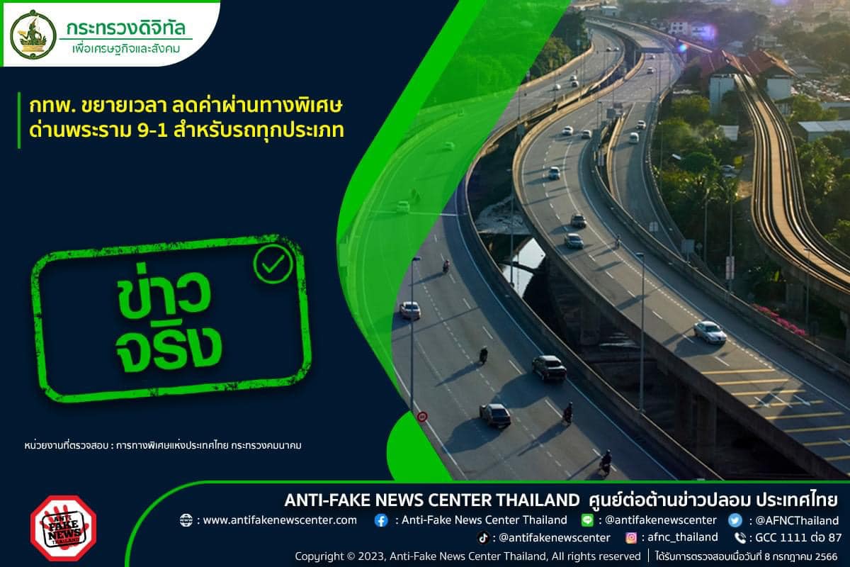 110 10/07/2566 ข่าวจริง กทพ. ขยายเวลา ลดค่าผ่านทางพิเศษด่านพระราม 9-1 สำหรับรถทุกประเภท