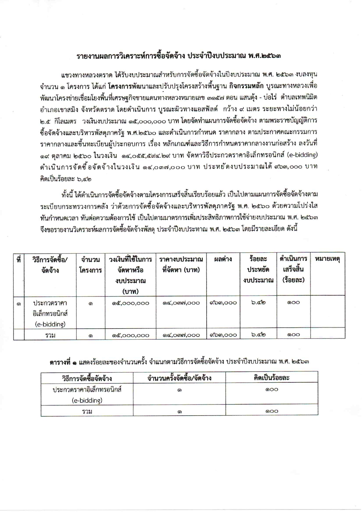 การวิเคราะห์ผลการจัดซื้อจัดจ้างโครงการที่หน่วยงานดำเนินการในปี2563(งบจังหวัด)