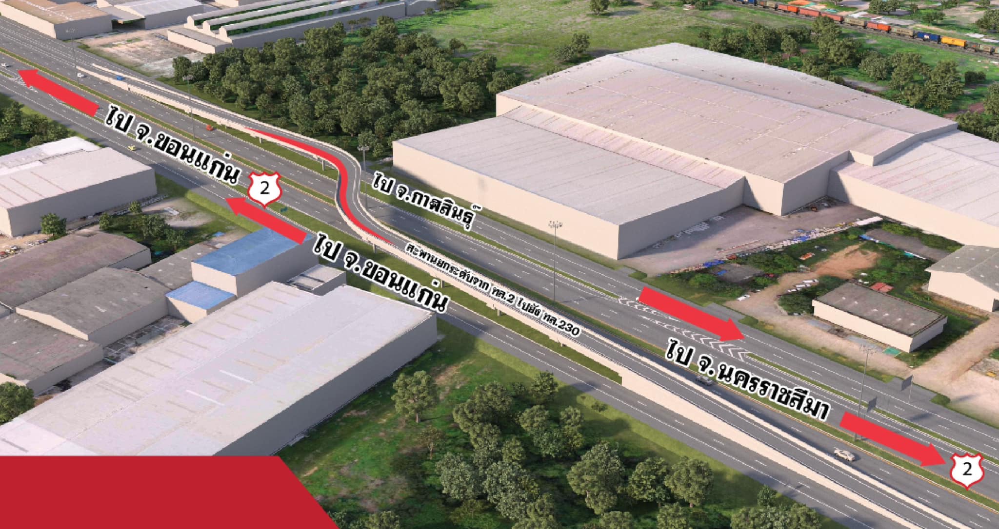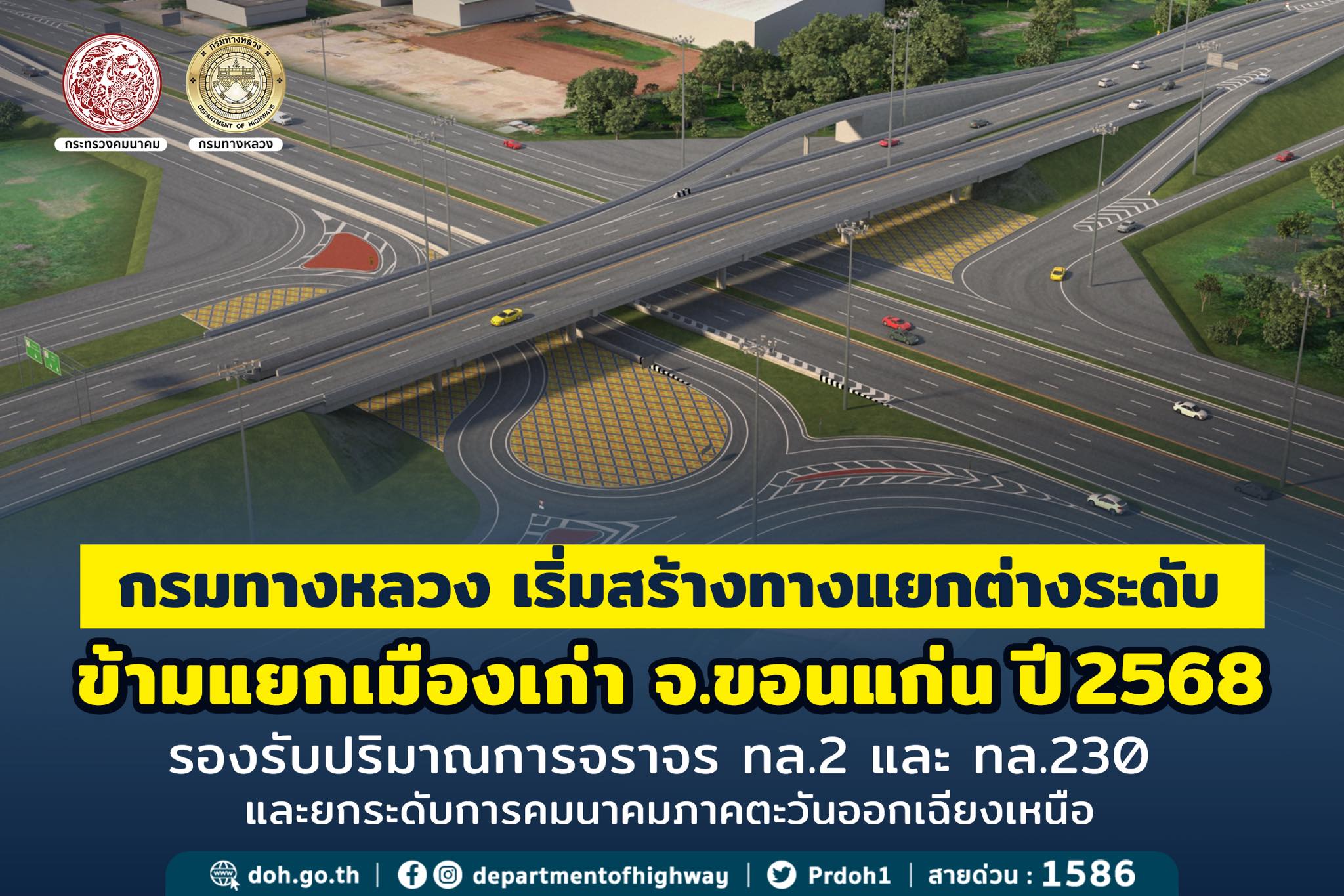 กรมทางหลวงเร่งพัฒนาโครงสร้างพื้นฐานก่อสร้างทางแยกต่างระดับจุดตัดทางหลวงหมายเลข 2 ตัดทางหลวงหมายเลข 230 (แยกเมืองเก่า) จังหวัดขอนแก่น เพิ่มประสิทธิภาพคมนาคมขนส่งและยกระดับการเดินทางภาคภาคตะวันออกเฉียงเหนือ
