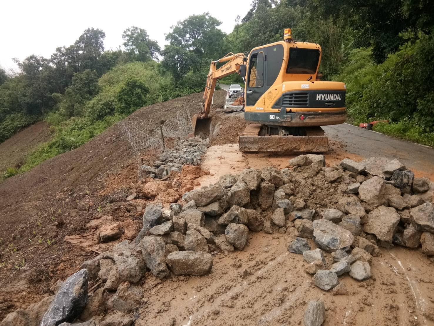 4. ทางหลวงหมายเลข 1155 ทรายกาด – บ้านลุง ช่วง กม.ที่ 27+400 – 27-500 ในพื้นที่อำเภอเทิง จังหวัดเชียงราย เกิดเหตุดินสไลด์ทำให้คันทางทรุดตัว