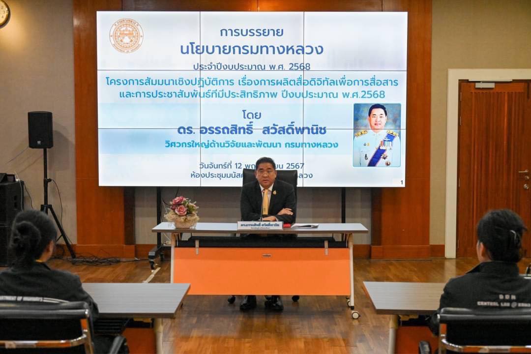 ข้อมูลข่าว : วันนี้ (12 พฤศจิกายน 2567) กรมทางหลวง จัดโครงการสัมมนาเชิงปฏิบัติการ เรื่อง การผลิตสื่อดิจิทัลเพื่อการสื่อสารและการประชาสัมพันธ์ที่มีประสิทธิภาพ ปีงบประมาณ พ.ศ.2568